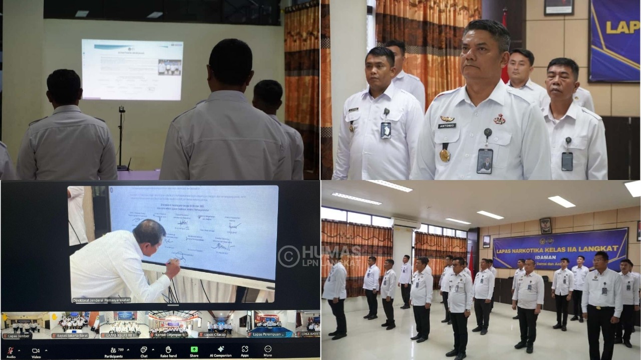 Seluruh jajaran Petugas Lembaga Pemasyarakatan (Lapas) Narkotika Kelas IIA Langkat melaksanakan kegiatan Penandatanganan Komitmen Bersama Pemasyarakatan sebagai wujud tekad untuk mewujudkan tata kelola pemasyarakatan yang bersih dari penyalahgunaan narkoba, handphone, dan barang terlarang lainnya (Halinar). Senin (20/10/2025).