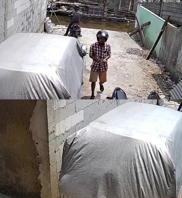 Dari rekaman CCTV yang diterima redaksi, terlihat dua pelaku menggunakan helm mendatangi lokasi. Salah satu pelaku mengenakan kemeja kotak-kotak merah putih dengan celana pendek cokelat, sementara seorang lainnya terlihat di belakang motor sambil membawa tas. Dalam hitungan menit, keduanya berhasil membawa kabur motor korban.