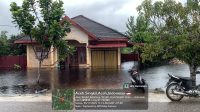 Singkil: Banjir masih melanda 16 desa dengan ketinggian air antara 50 hingga 70 cm. Jalan mitigasi bencana di Desa Pea Bumbung masih terputus.