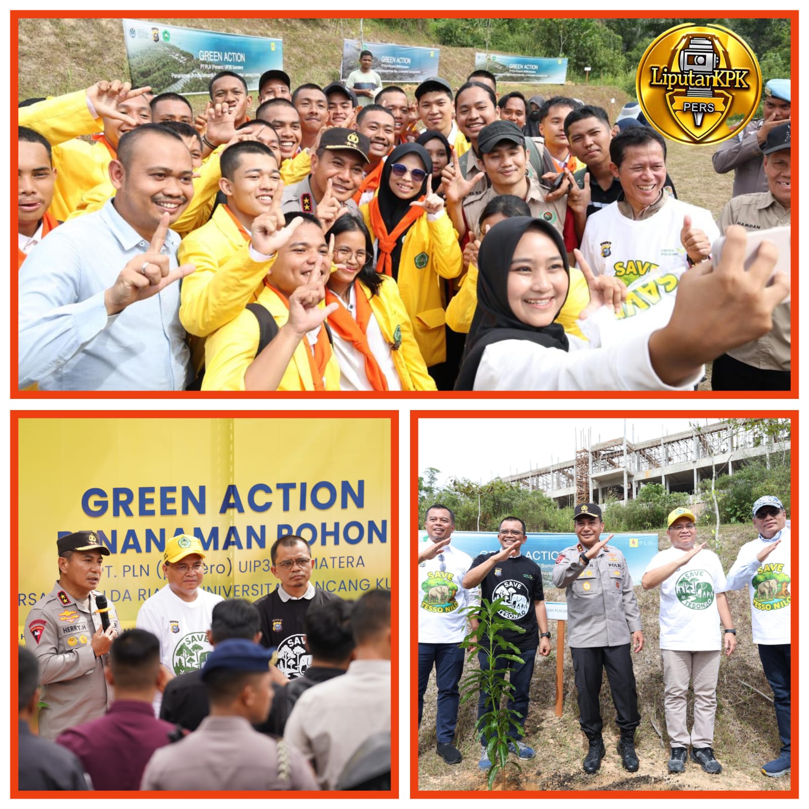 Kegiatan ‘Green Action’ ditutup dengan penanaman pohon secara simbolik oleh Kapolda Riau, Rektor Unilak, dan GM PT PLN UIP3B Sumatera.