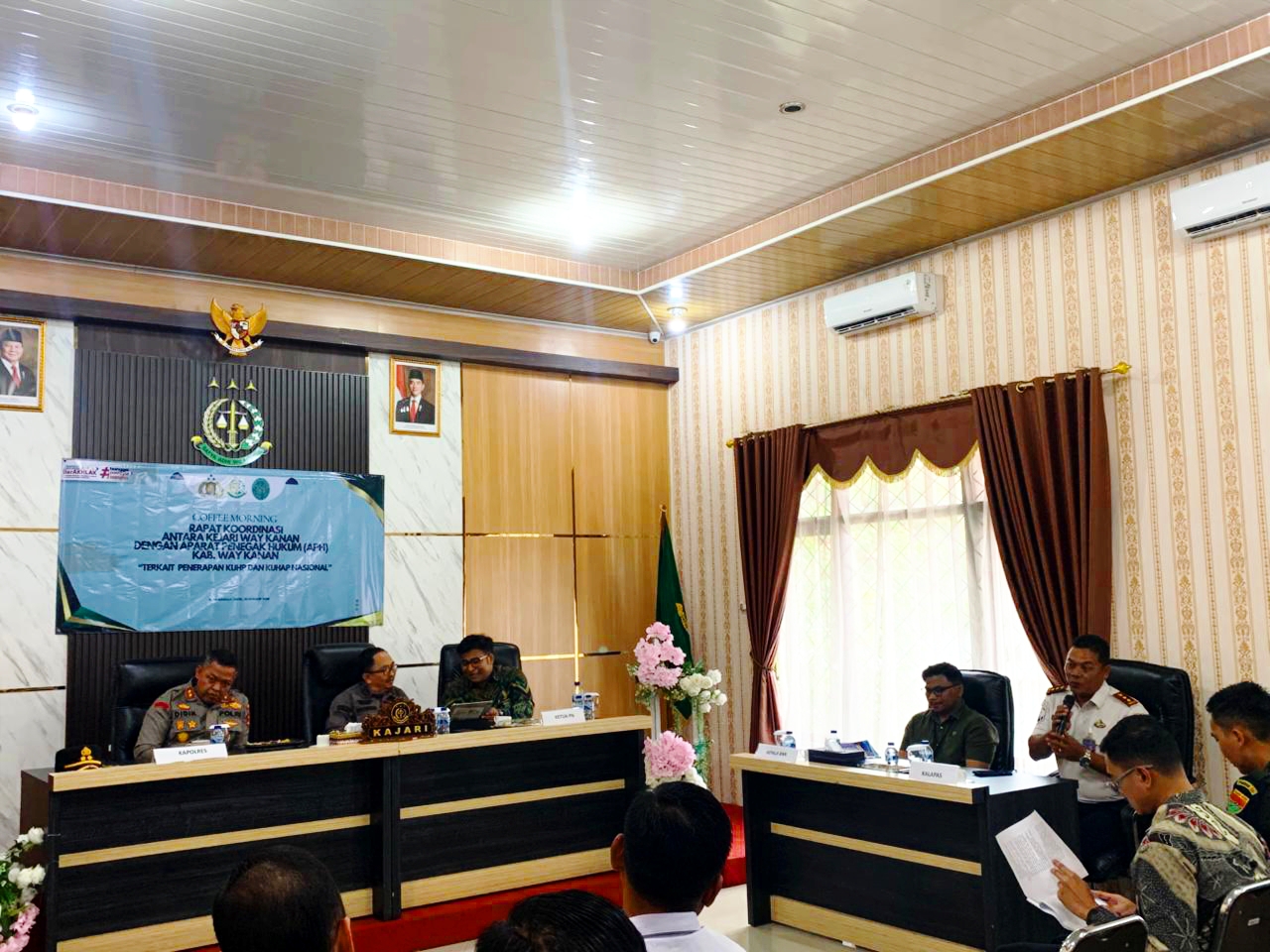 Acara diawali dengan pembukaan oleh penyelenggara, dilanjutkan sambutan Kepala Kejaksaan Negeri Way Kanan. Selanjutnya pemaparan materi terkait penanganan perkara pidana pasca berlakunya KUHP dan KUHAP baru serta undang-undang penyesuaian pidana.