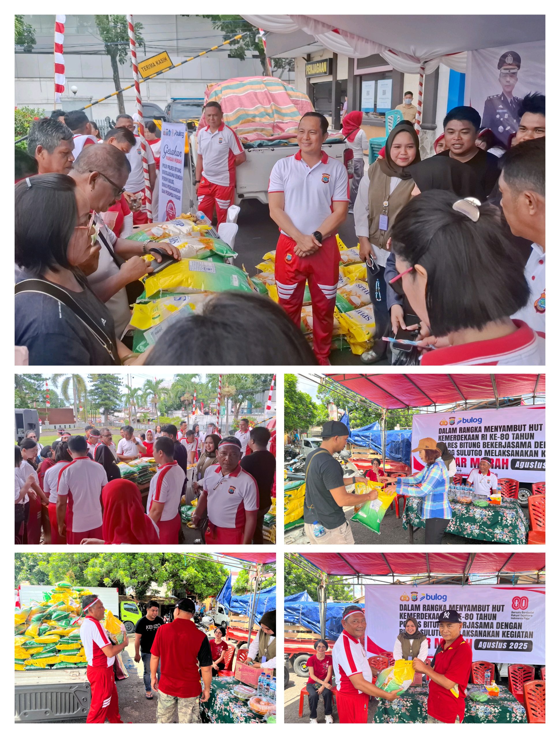 Bitung, Sulut | liputankpk.com — Polres Bitung menggelar Gerakan Pangan Murah (GPM) sebagai bagian dari perayaan HUT Kemerdekaan RI ke-80. Kegiatan ini dilaksanakan di halaman Mako Polres Bitung pada Jumat, 8 Agustus 2025, bekerja sama dengan Perum Bulog SulutGo dan Perumda Pasar. Pasar murah ini menawarkan komoditas pangan dengan harga terjangkau, terutama beras, untuk membantu masyarakat menghadapi kenaikan harga di pasaran. Sabtu, 9 Agustus 2025.