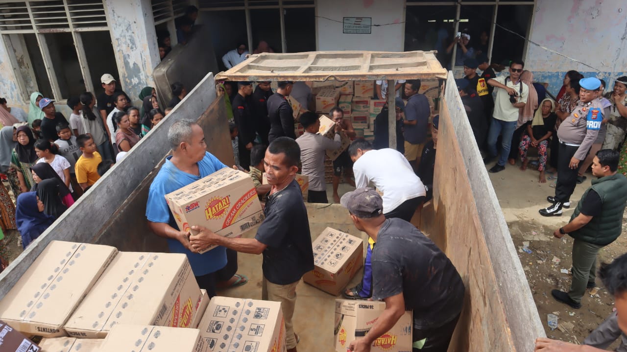 Bantuan yang diberikan meliputi beras, air mineral, pakaian, selimut, karpet, tikar, mie instan, biskuit, telur, hingga kebutuhan dasar lainnya.
