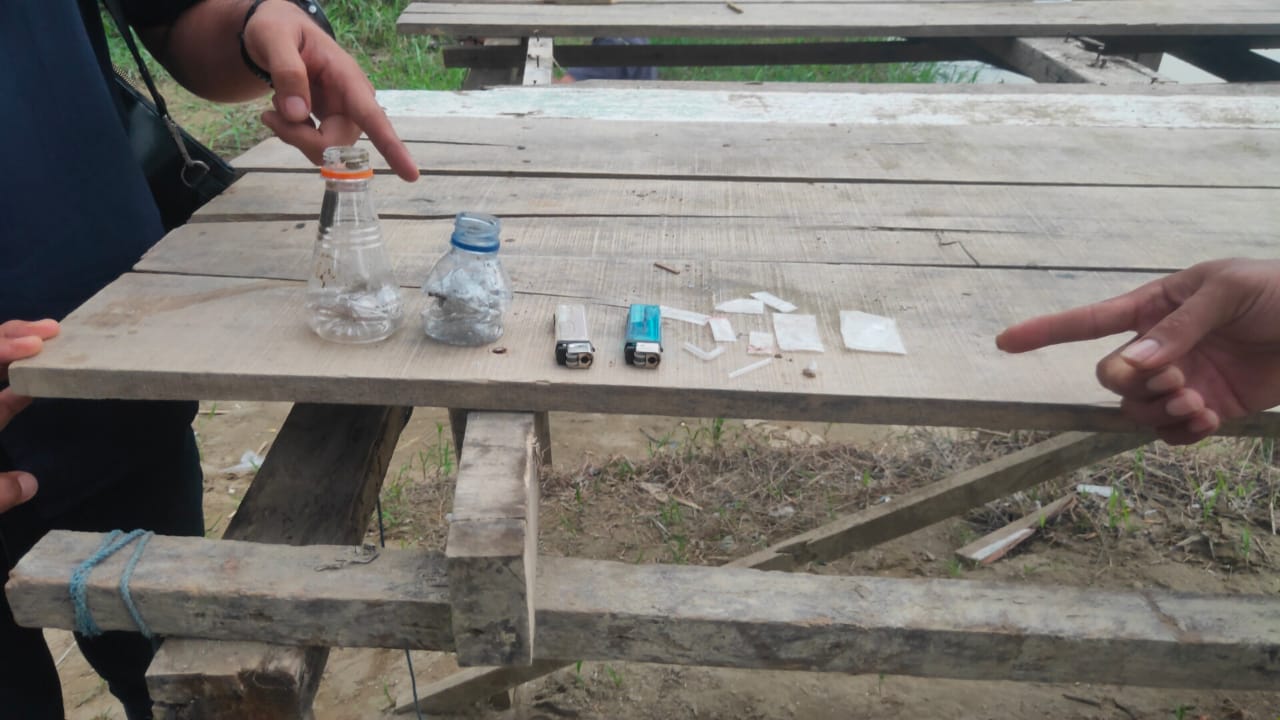 Dalam kegiatan tersebut, petugas mendatangi tiga lokasi berbeda. Di lokasi pertama yang berada di sekitar area eks pelabuhan/syahbandar, petugas menemukan barang bukti berupa botol bong, plastik klip bening kosong, pipet sekop, dan mancis. Selanjutnya, gubuk di lokasi tersebut dirubuhkan dan dibakar.