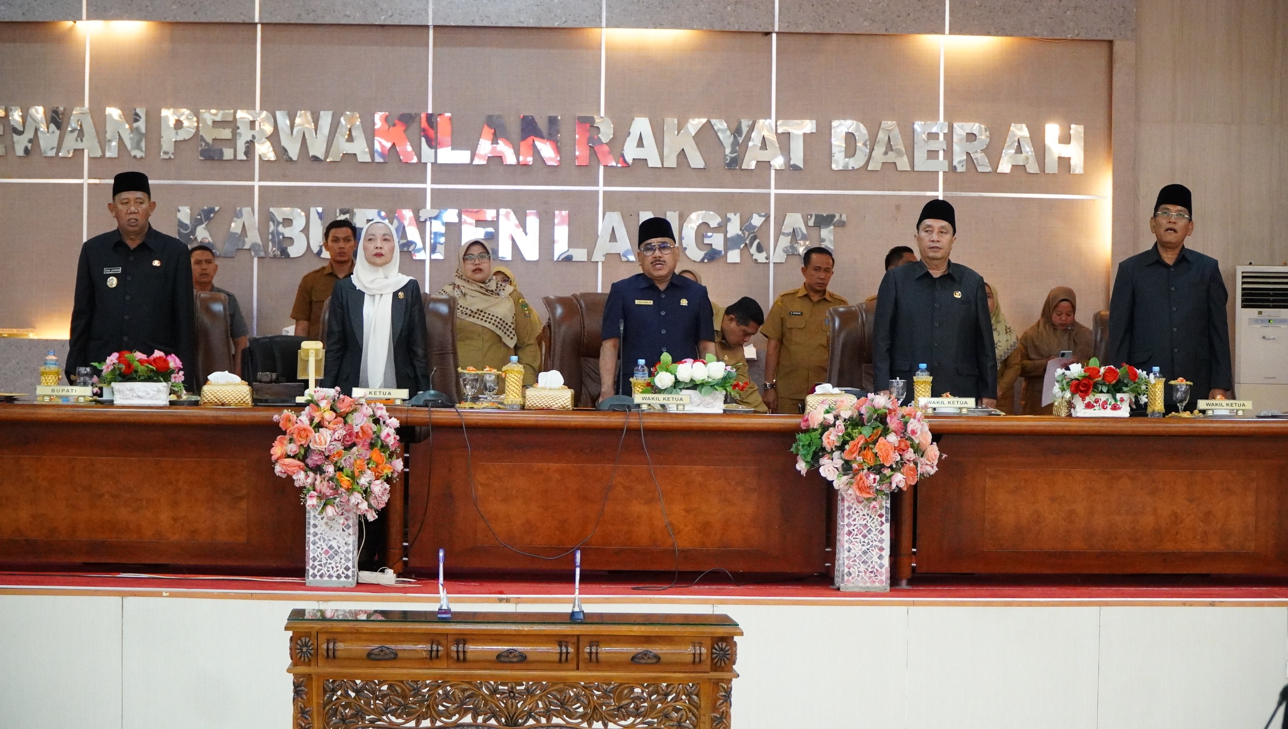 Rapat dipimpin langsung oleh Ketua DPRD Sribana Perangin-angin, SE didampingi para wakil ketua. Turut hadir Sekretaris Daerah Kabupaten Langkat H. Amril, S.Sos, M.AP, perwakilan Forkopimda, pimpinan OPD, camat se-Langkat, serta jajaran direksi BUMD dan BUMN daerah.
